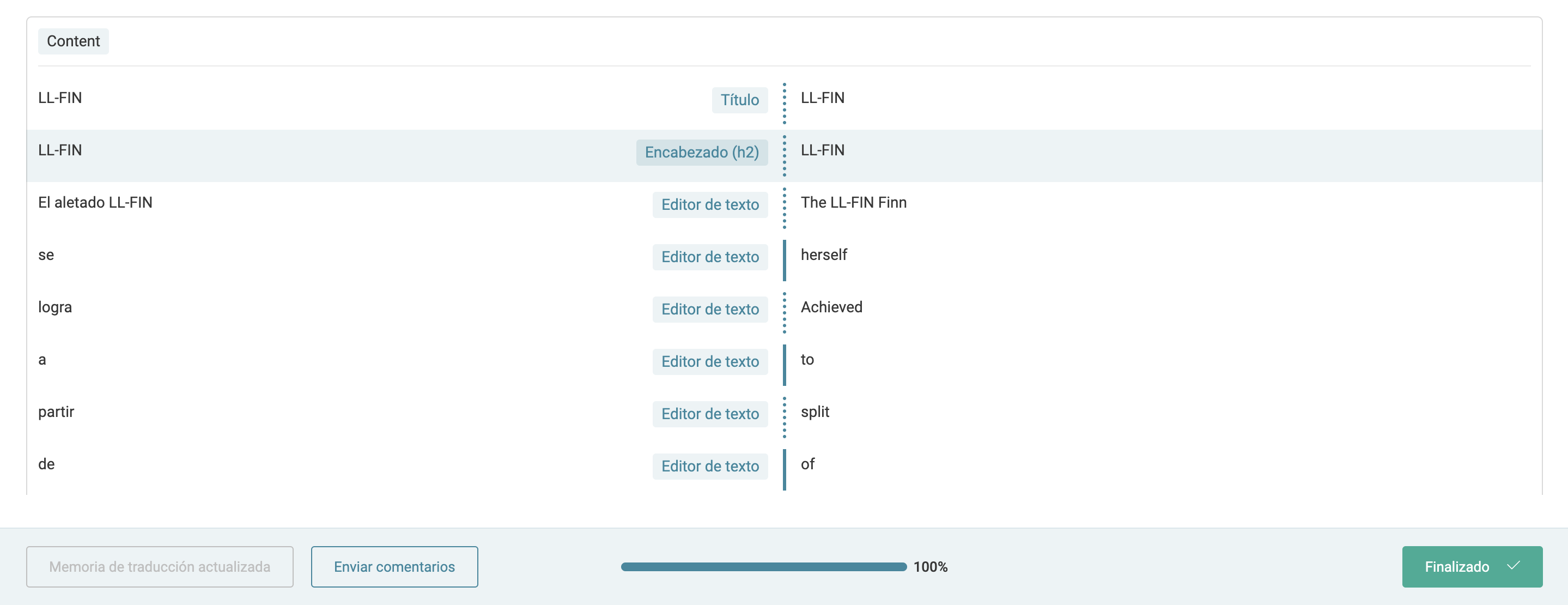 Text is divided into multiple blocks during automatic translation, and many words are not translated. The editor requires translation of every block, preventing manual text addition.