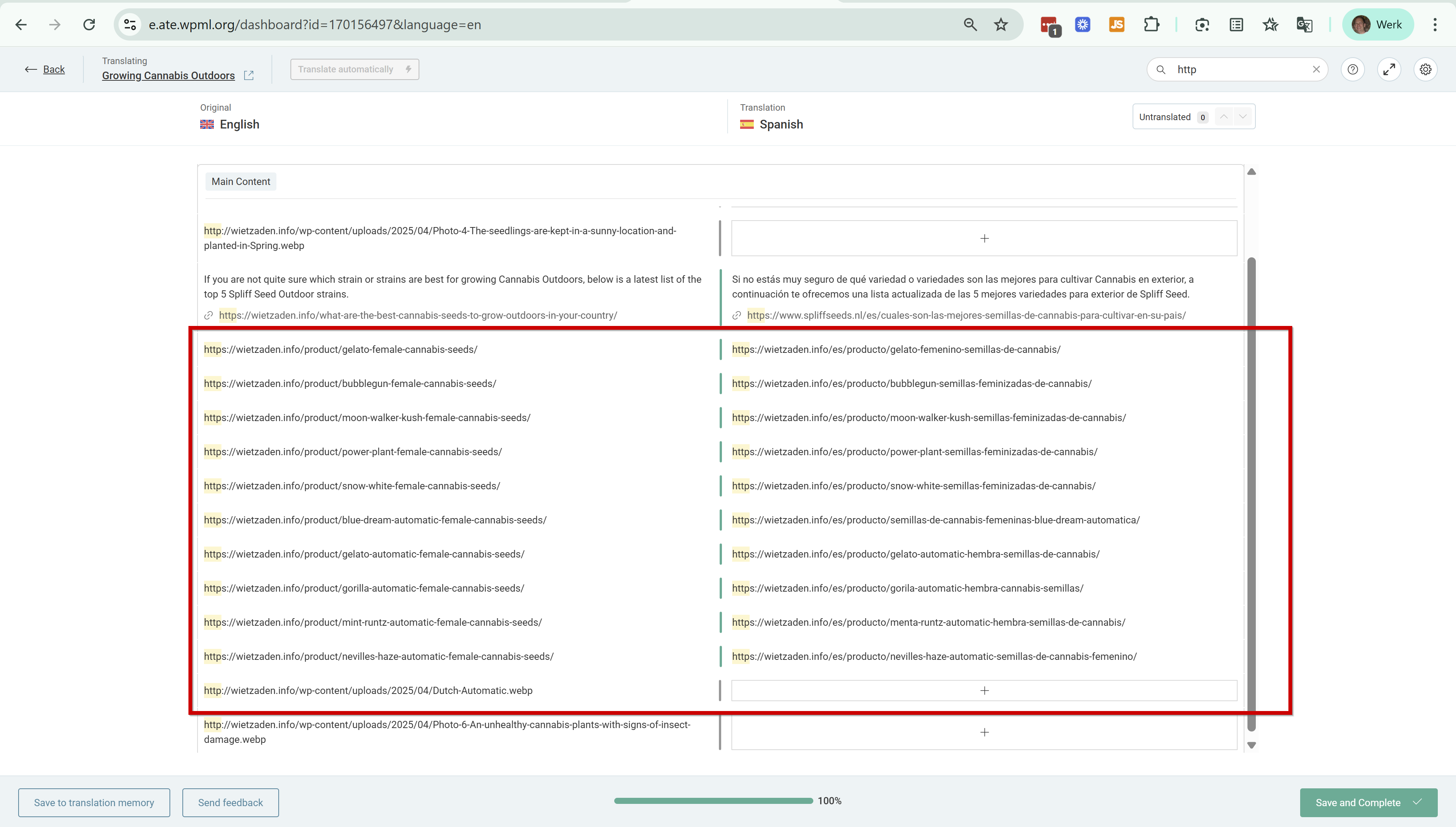 The links in the translated Spanish blog posts start in the WPML ATE with the domain of the staging website instead of the live website. However on the live website the translated links start with the live domain. link nascosto