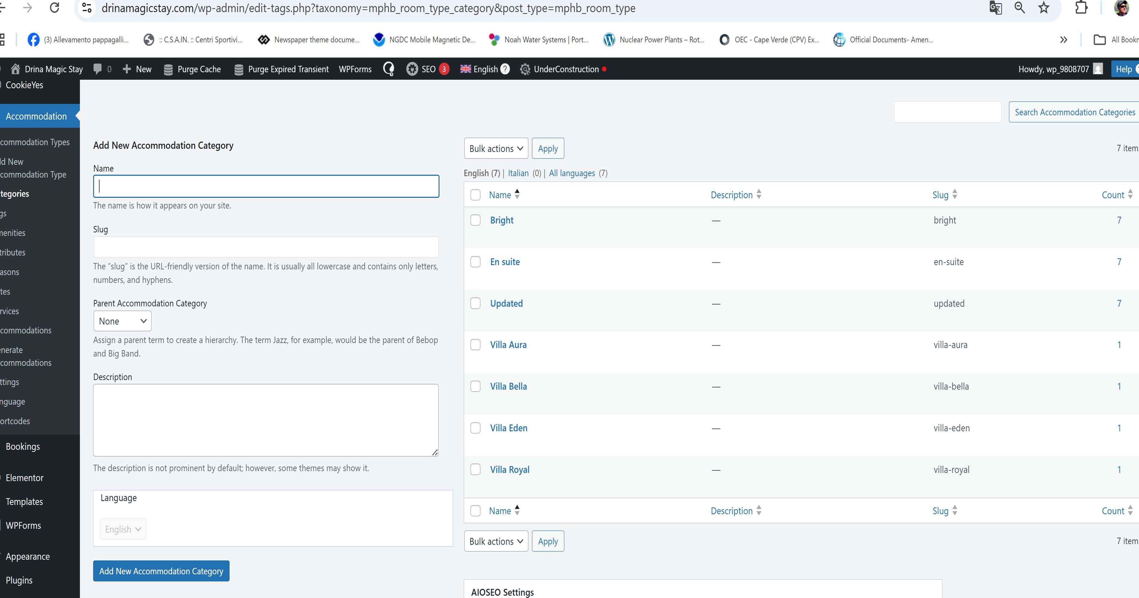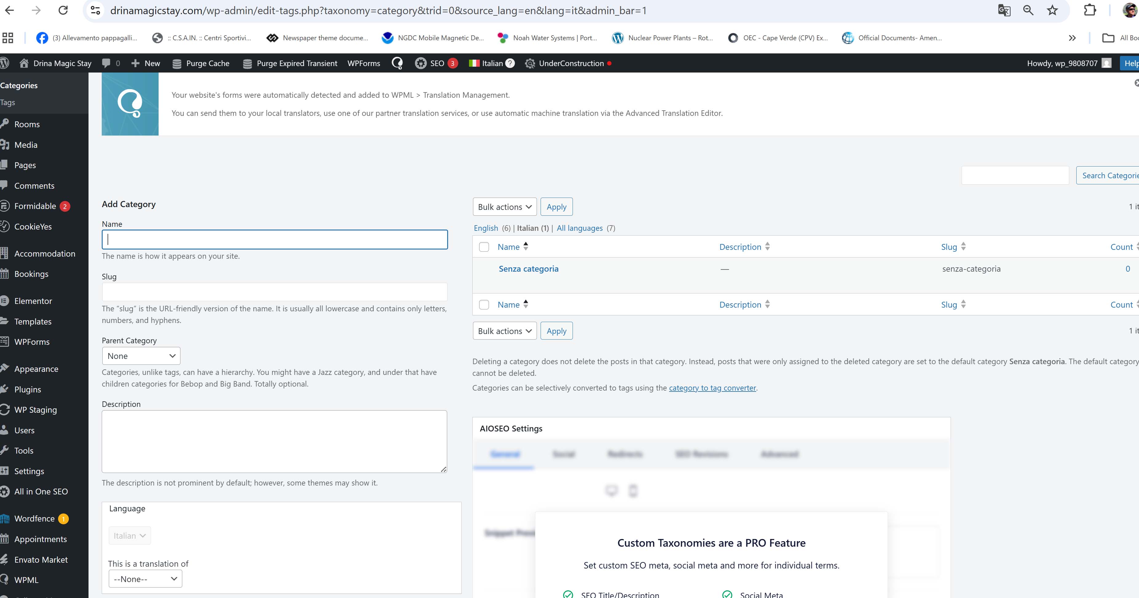 Buona sera, Come da tuo consiglio ho provato a tradurre delle pagine, post etc... ma WPML non le ha tradotte.... ti inoltro la schermata... Io ho scritto come da tuo consiglio chiedendo spiegazioni a Bellevue.. ma sono giorni che non rispondono..... unico messaggio... è stato ...se vuoi ti rinborsiamo.... ed io ho risposto che dopo decine e decine di ore sul sito... non lo prendo nemmeno in considerazione!!!! Per cui hochiesto spiegazioni e non di scappare da responsabilità... Non so se in elementor devo fare una operazione particolare per tradurre i contenuti... dimmi te... IO ho praticamente aggiunto tutte le pagine e contenuti necessari Nella sezione Blog, non si vedevano ipost perchè non sono state tradotte le categorie..... guarda immagine.. no categories Ho aggiunto la categoria a mano e aggiornato manualmente tutti i post.... un lavoraccio.... po aggiornato la pagina Blog i elementor facendo scegliere Attività come categoria per vedere i post Accomodatio.... le ville non si vedono in italiano perch+ wpml ha omesso tutte le categorie.... come puoi vedere dalle due immagini... sto rimodificando a mano tutto.... un delirio.... c'è tantissimo lavoro manuale.... in WPML non esistono queste sezioni |