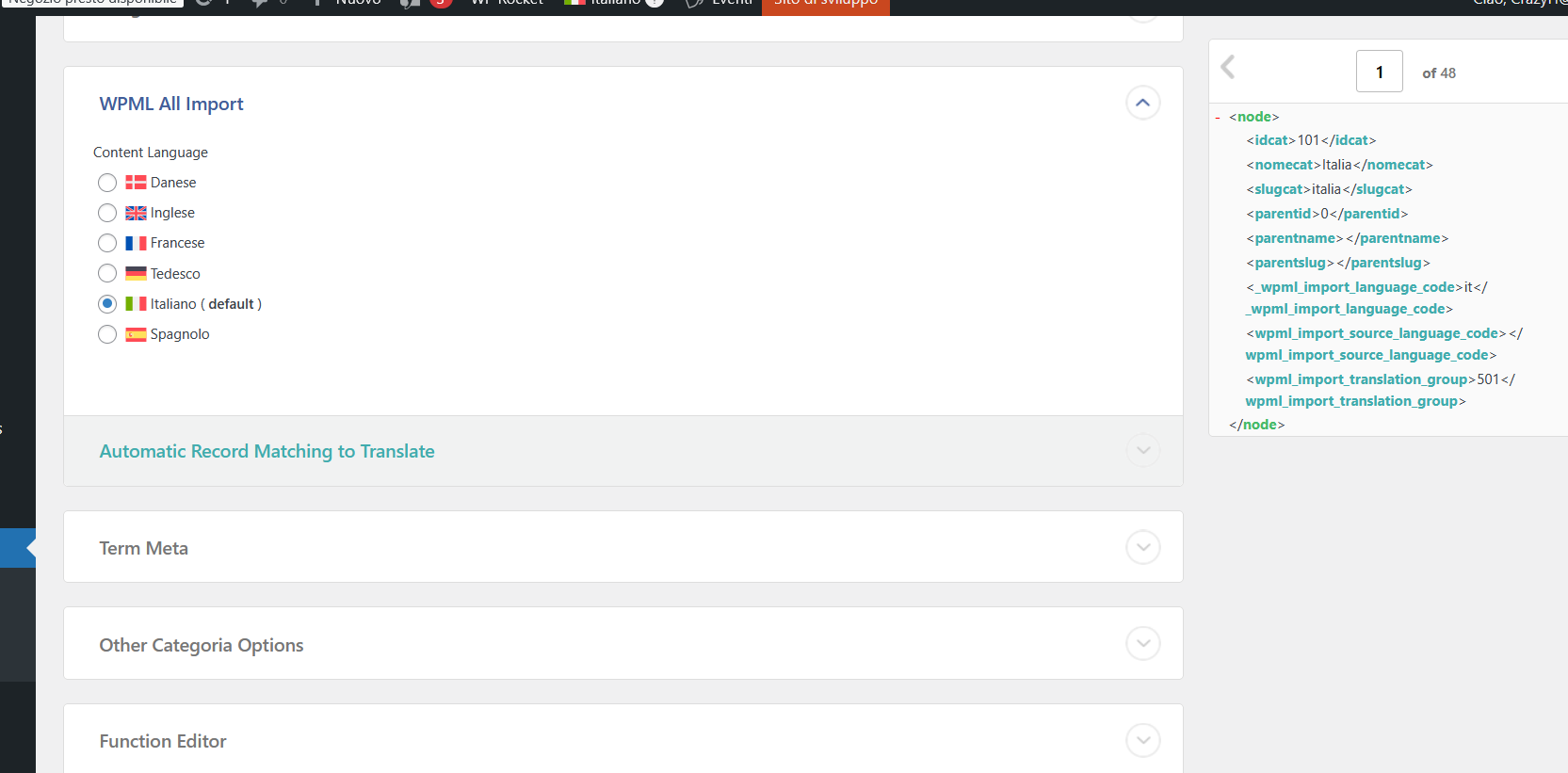 ho disattivato WPML All Import e lasciato attivato WPML Export & Import. il file lo importo con WP All Import Pro.