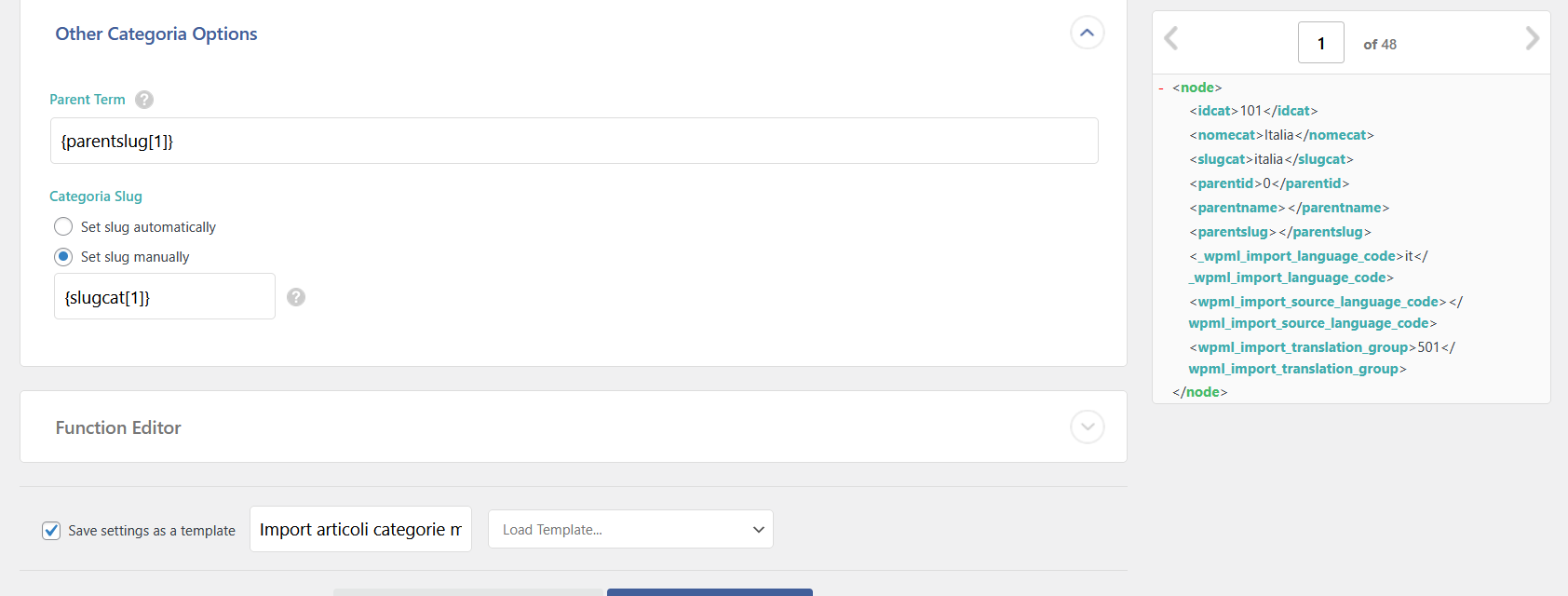 Sto cercando di importare le categorie e gli articoli da pubblicare sul sito in fase di sviluppo utilizzando WPML e WP All Import. Ho seguito le indicazioni del video presente sul sito e creato il file Excel come spiegato.