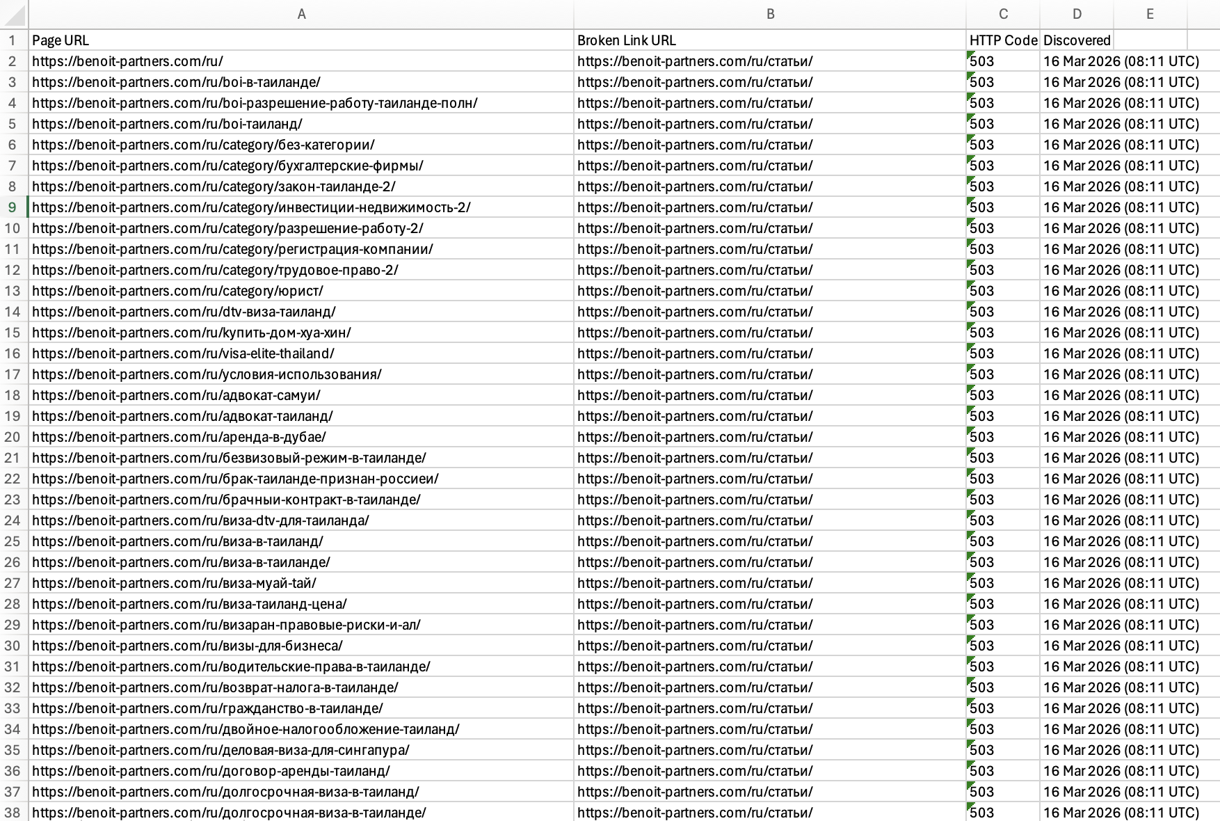 loads normally when accessed manually. However, during SEO crawls, it is flagged as a broken internal link with intermittent 503 errors.
