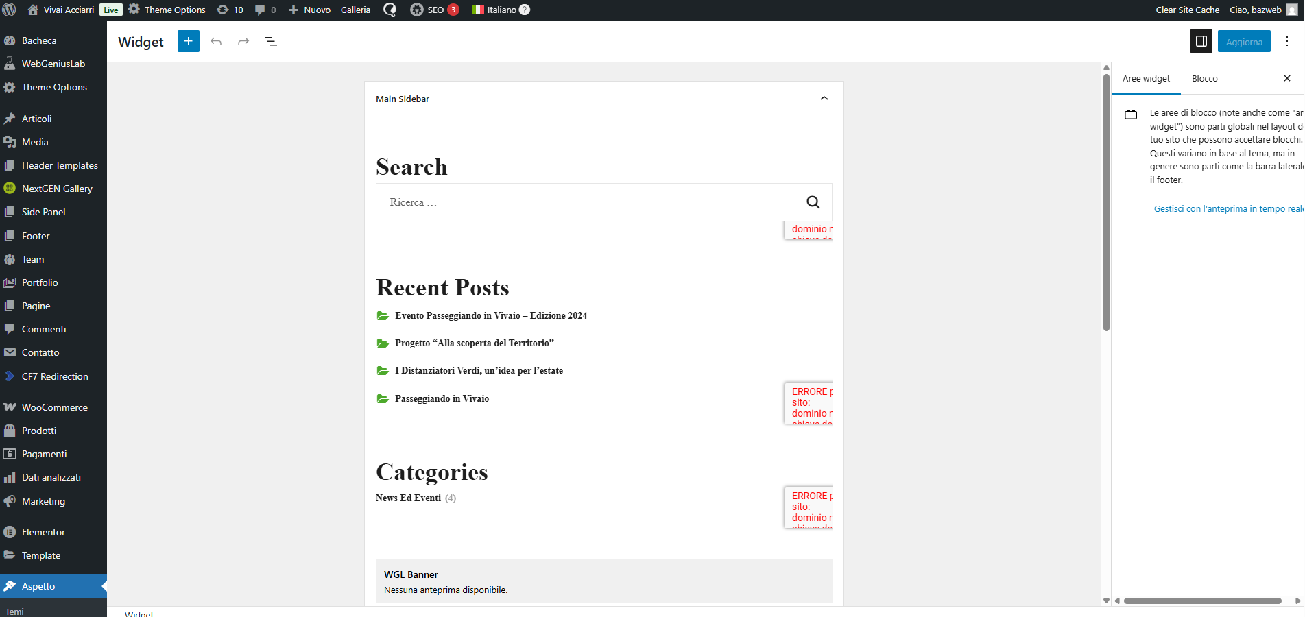Stai cercando di tradurre la sidebar del blog sul tuo sito, configurata tra i widget di WordPress. La sidebar non è visibile nelle lingue EN o FR, rimanendo disponibile solo nella lingua originale.
