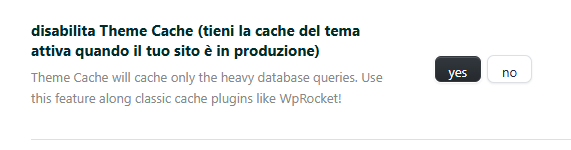 Per prima cosa, ti chiedo di disattivare l’opzione di cache dalle impostazioni del tema, come già consigliato in precedenza. Abbiamo visto che questa funzione sta causando diversi problemi di sincronizzazione. Poi procediamo con un problema alla volta. Ti chiedo gentilmente di installare il tema nel sito di prova che ti ho indicato prima, così possiamo verificare se il problema si presenta anche lì. In questo modo potrò raccogliere tutte le informazioni necessarie per inviare il caso al nostro team di compatibilità. |