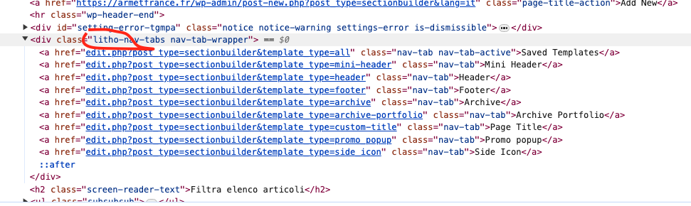 l'header è in Section Builder