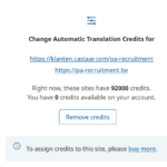 I am trying to assign the translation credits I bought for WPML Multilingual CMS to the site pa-recruitment.be. I took over this website from another agency, castaar.be, and I am having trouble assigning the credits.