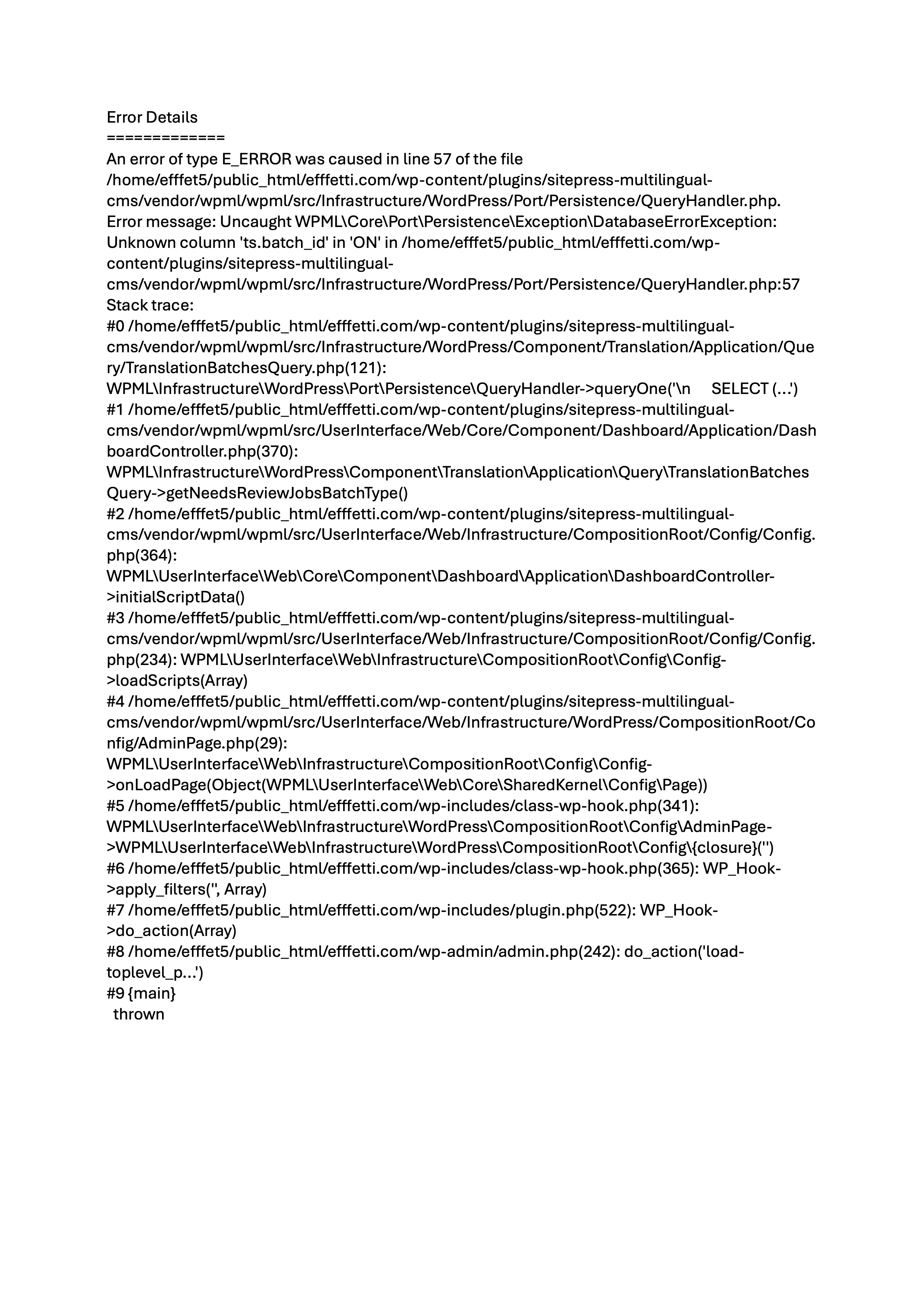 In this case, WordPress caught an error with one of your plugins, WPML Multilingual CMS.