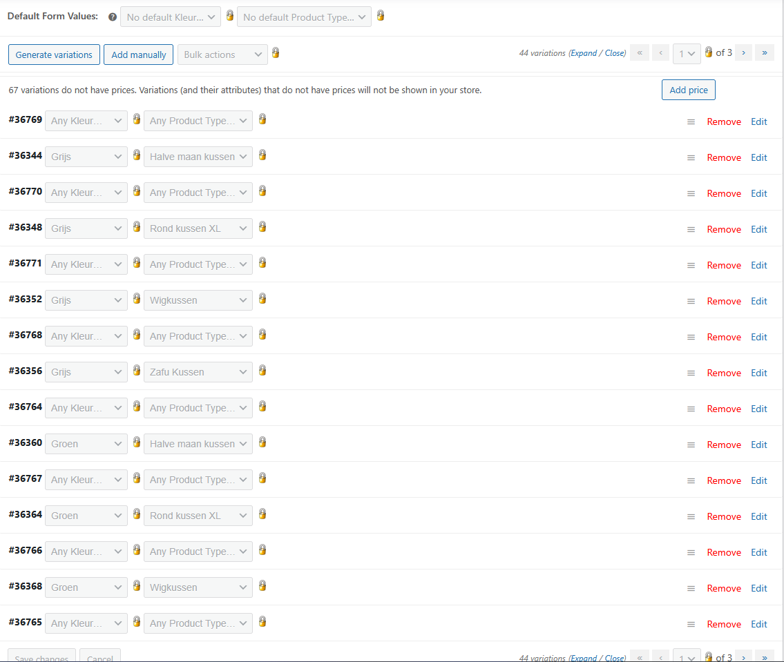 However, in the Dutch (NL) product translation, the variations are broken: