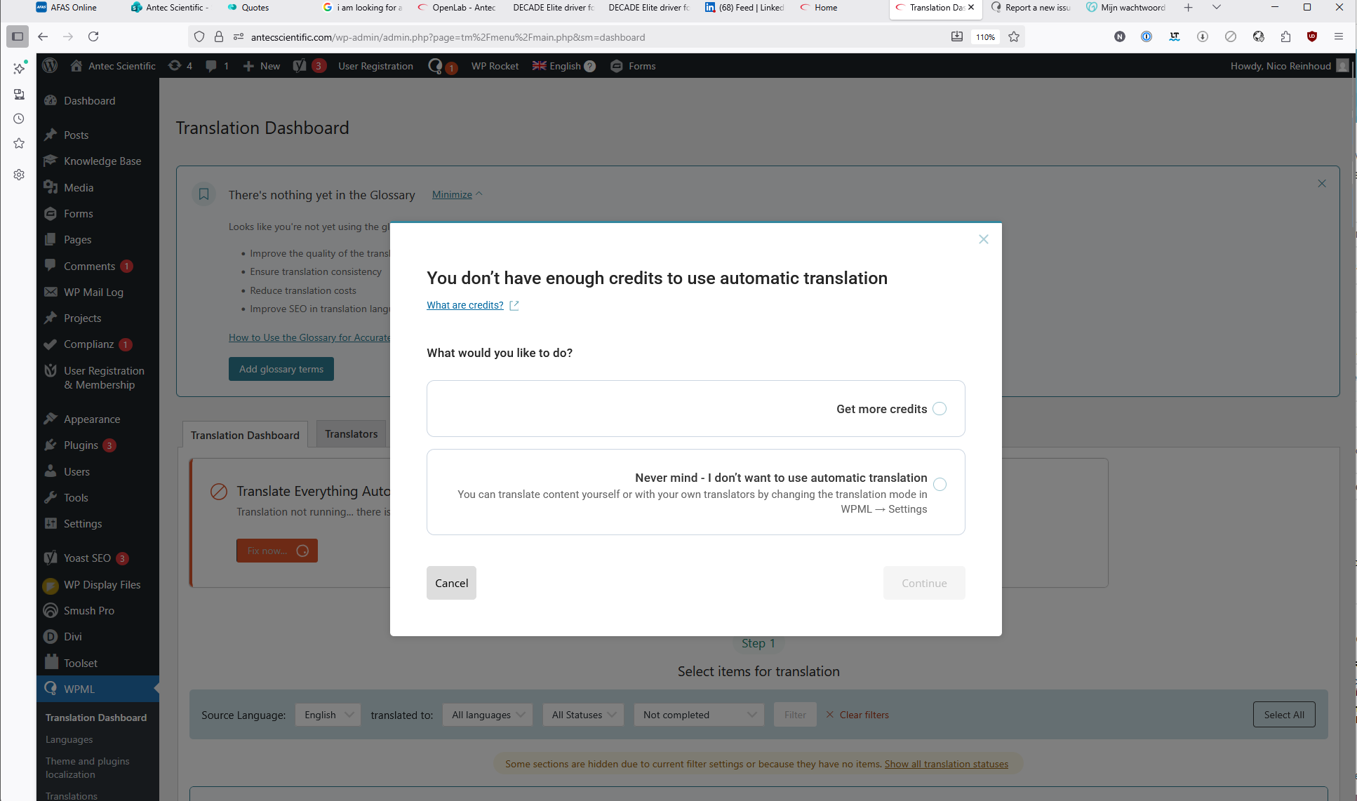 I am trying to use WPML on my website link nascosto. I paid $99 on September 9, 2025, with invoice number 17386686, but it seems it is not registered to my account or website.