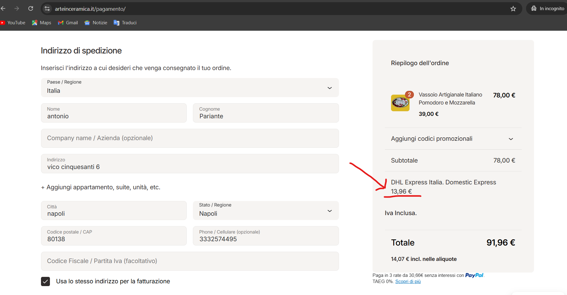 I costi delle spedizioni non vengono convertiti in altre valute.
