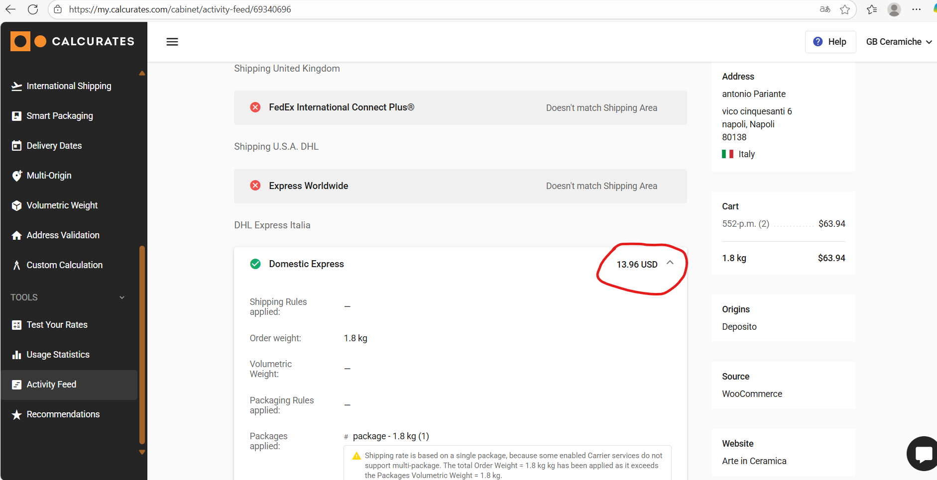 Sto cercando di convertire i costi delle mie spedizioni in altre valute sul mio sito 숨겨진 링크.
