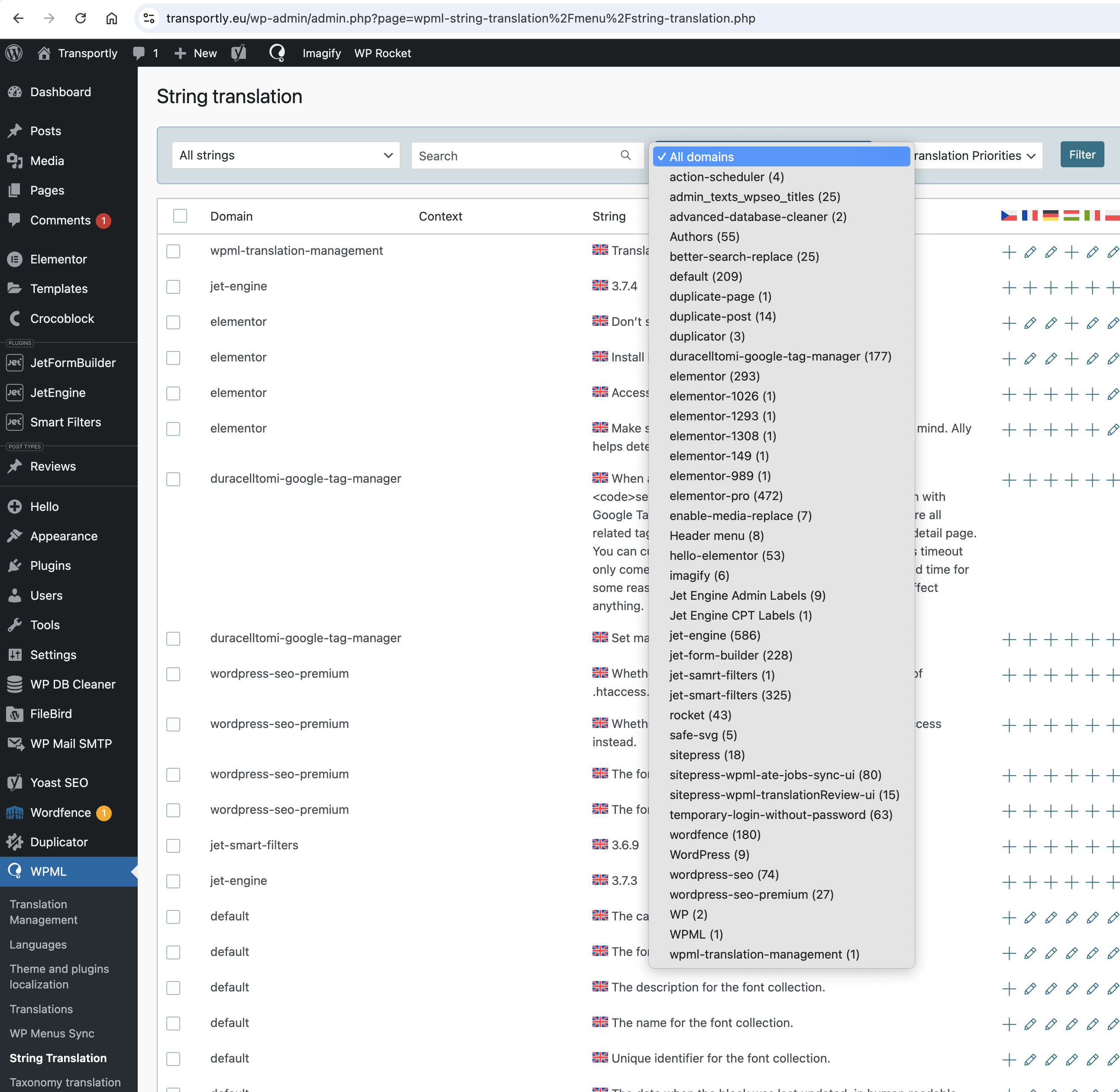 After a recent WPML update, most of the translation domains for Elementor pages disappeared. The domains are broken, and there are only a few of them now. Even though it looks like there is a string in them (e.g., 'elementor-1292 (1)'), filtering out the domain shows nothing. I suspect the issue is in the database.