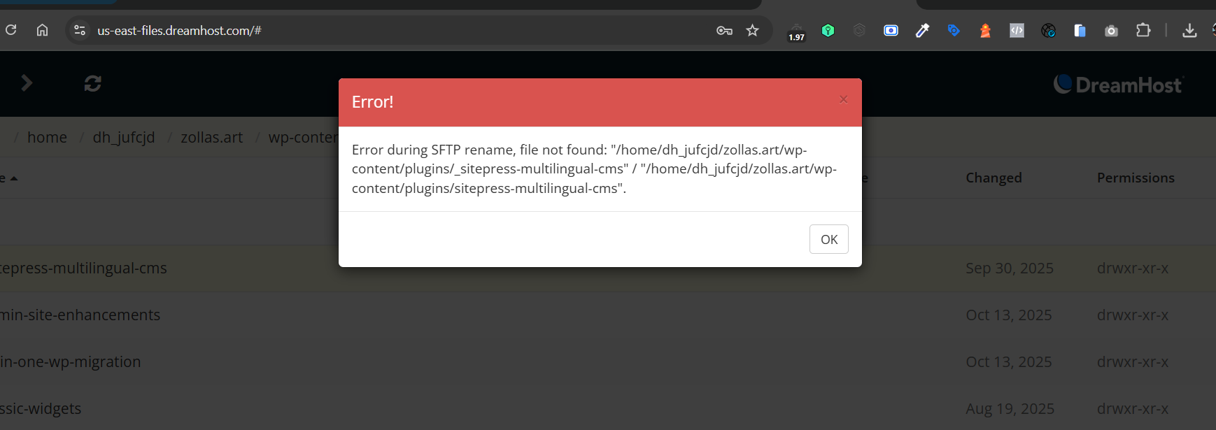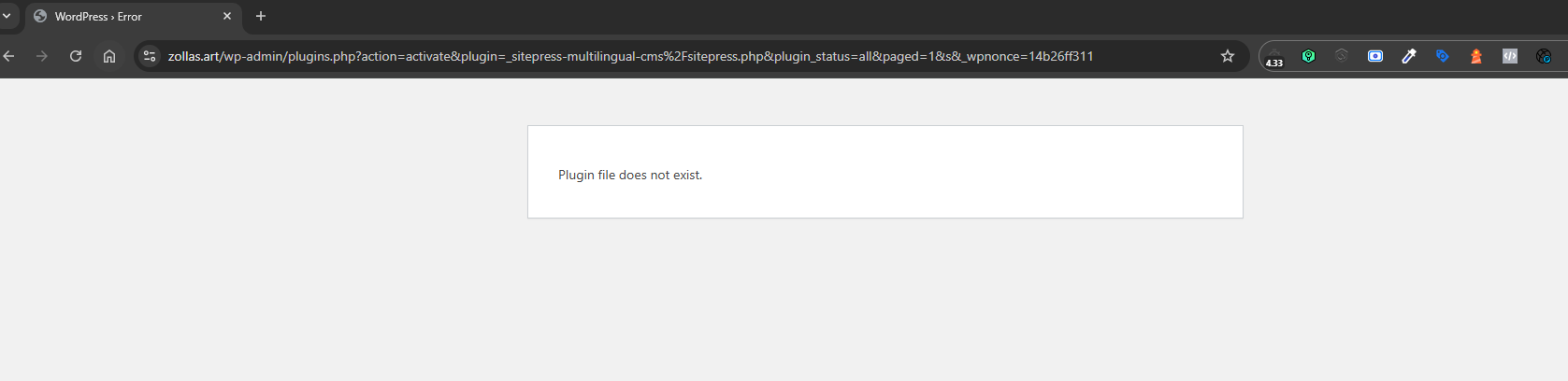 A questão é que nem conseguimos aceder ao backoffice pois assim que fazemos login dá logo a mensagem de erro crítico. Renomeando o plugin WPML Multilingual CMS no cpanel já conseguimos fazer login no backoffice e vemos que apenas existe um plugin por actualizar que é o próprio WPML Multilingual CMS. Actualizamos para a versão 4.8.3 e depois quanto tentámos activar em backoffice ele diz que o plugin não existe e se tentámos renomear novamente no cpanel dá o erro em anexo. |
