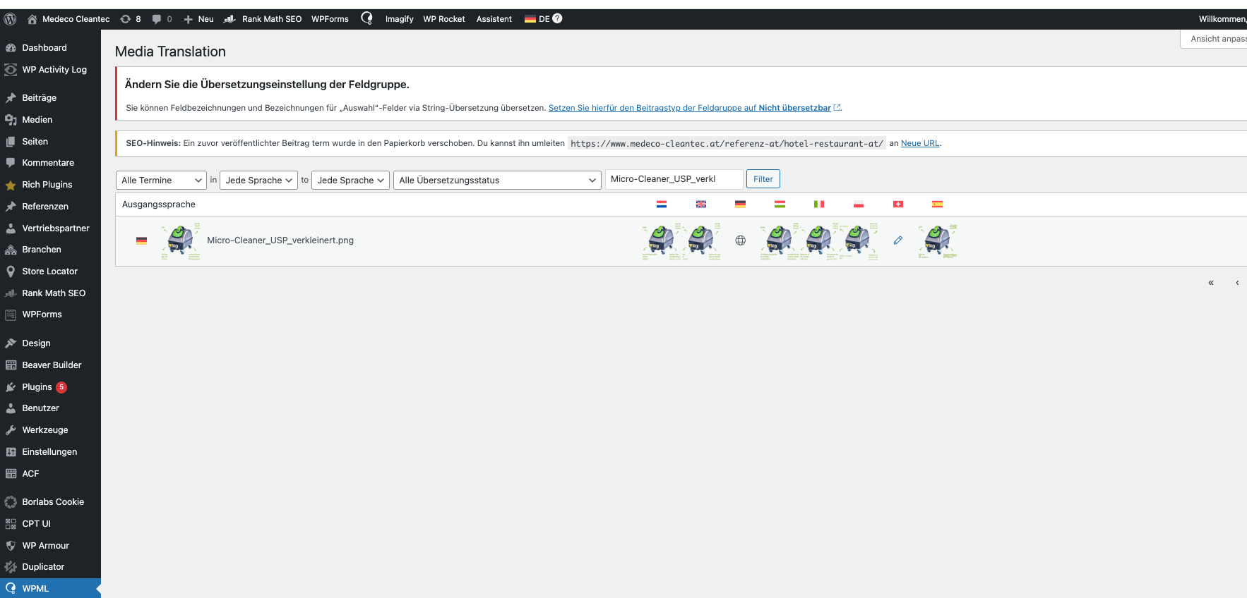 I want to display different header images on the homepage for each language using Beaver Builder. The German version should show the German image, and the English version should show the English image, etc. I have followed all the steps suggested by your support and replaced the images in WPML → Media Translation, updated the translations using the WPML Translation Editor, and cleared all caches.