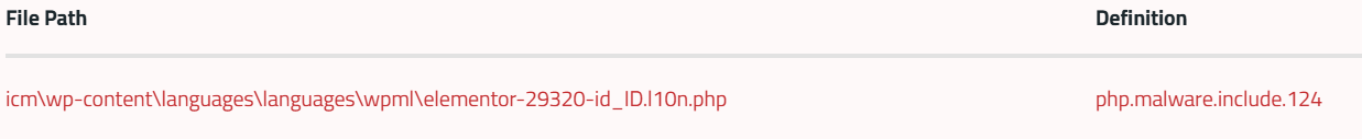 I am trying to address an issue where the content downloaded from WPML is infected with malicious code. This is affecting our production site. The specific file in question is icmwp-contentlanguageslanguageswpmlelementor-29320-id_ID.l10n.php. The issue can be seen on the page: link oculto.