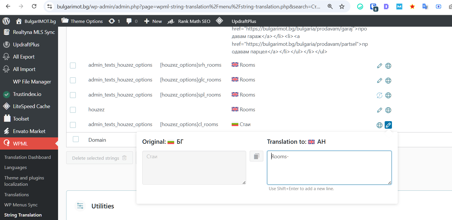 Background of the issue: I am trying to translate a Bulgarian string into English on my website. The issue can be seen on this page: link oculto