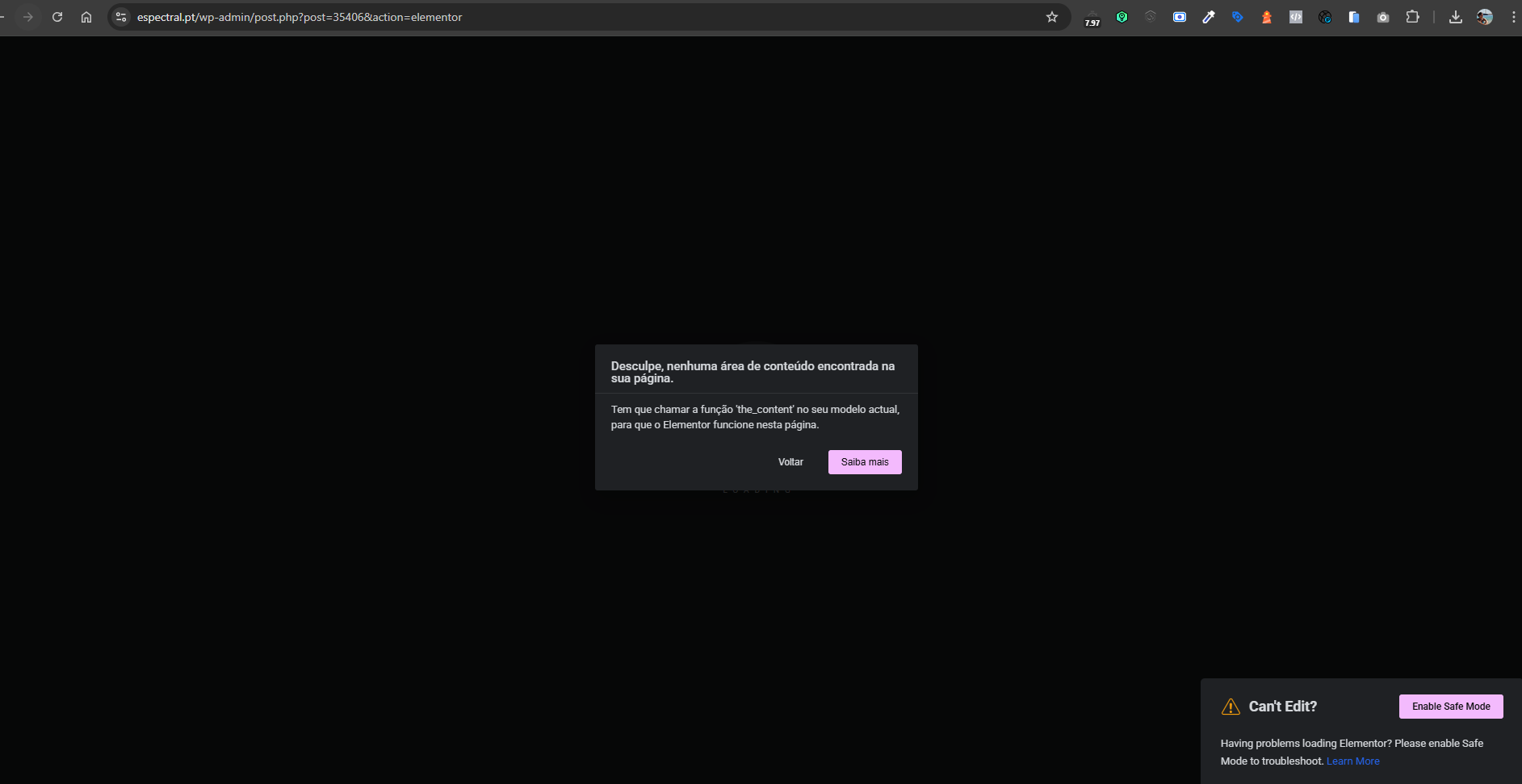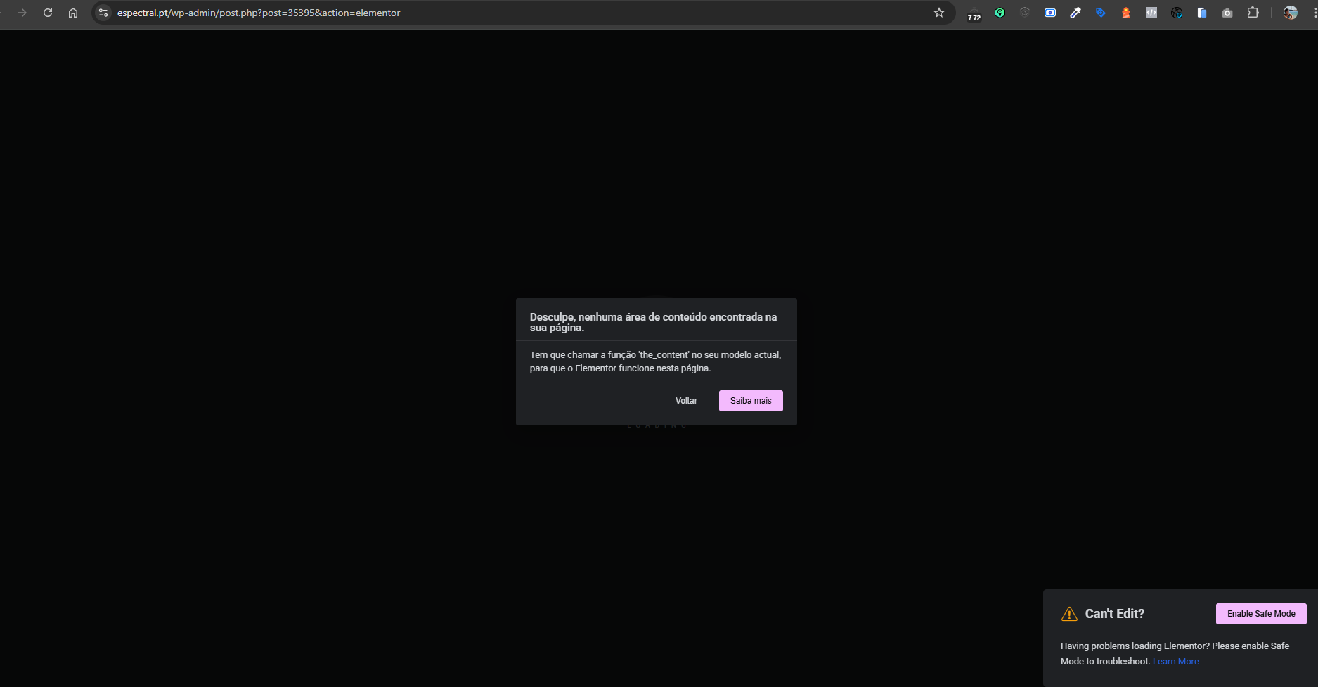 Boa tarde Já alterámos o limite de memória e testámos editar a página com o Elementor mas está igual. |