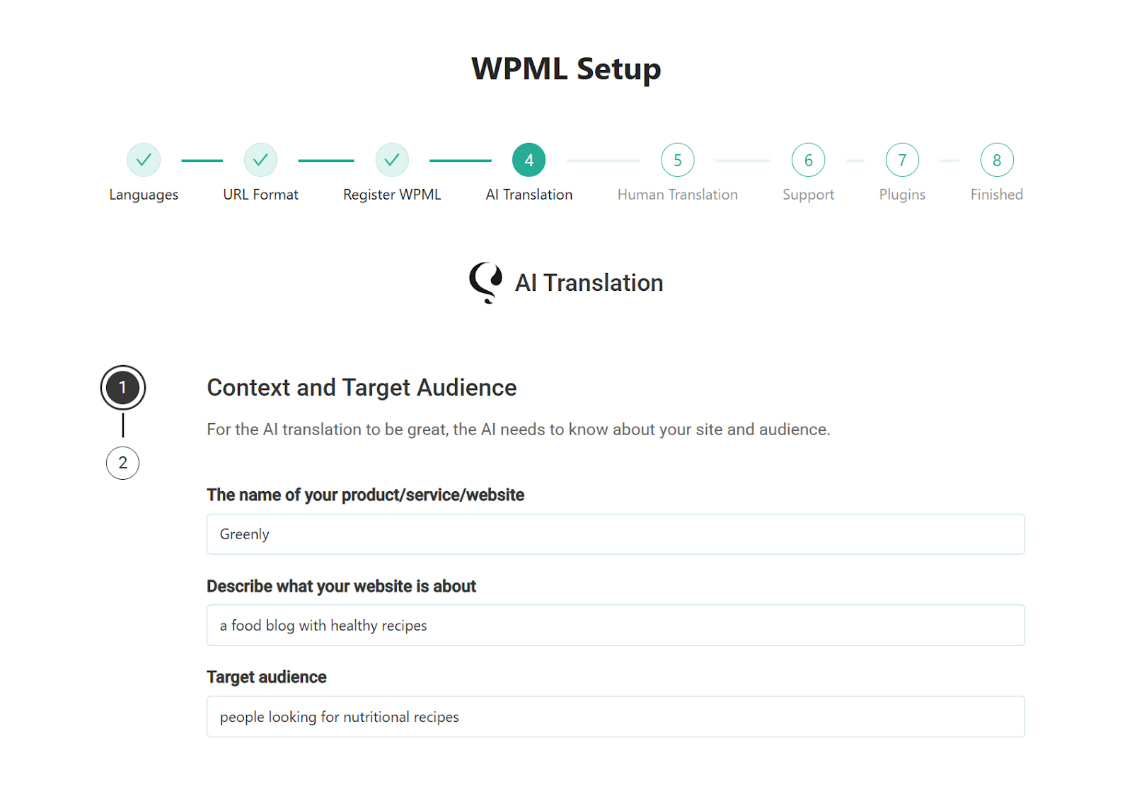 O PTC é especificamente otimizado para traduzir sites WordPress e pode criar traduções de qualidade humana usando o contexto que você fornece.