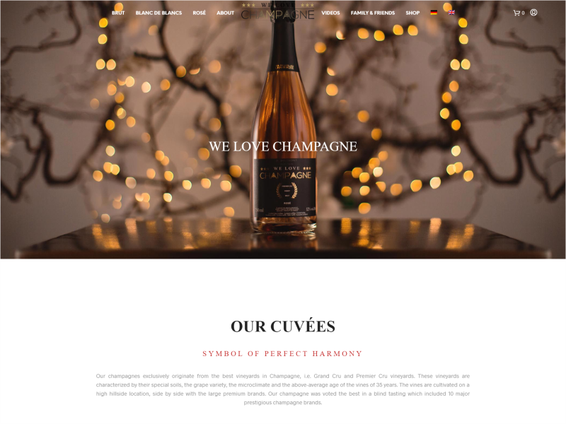 Relaunch der Website für das auf hochwertige Champagner spezialisierte Unternehmen „We love Champagne“ in Deutschland.