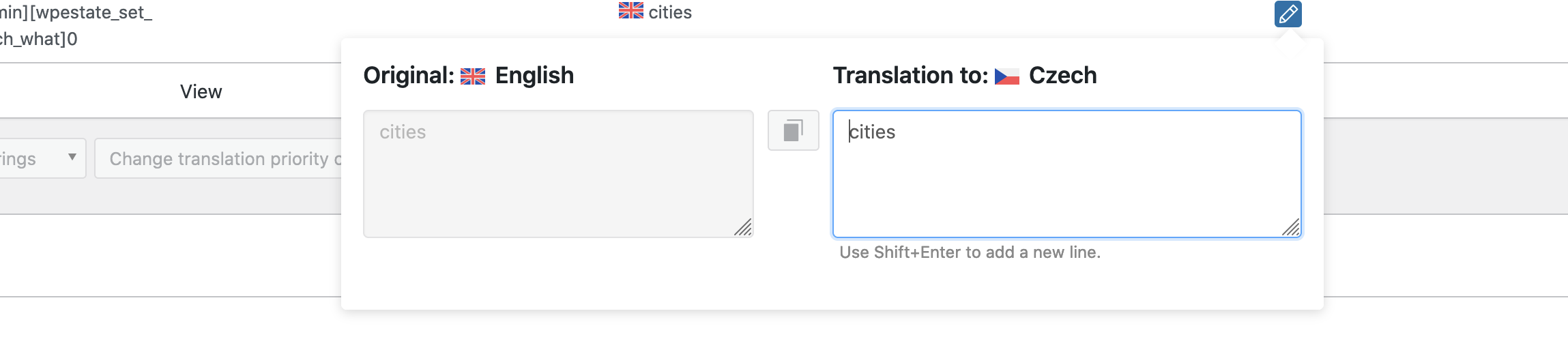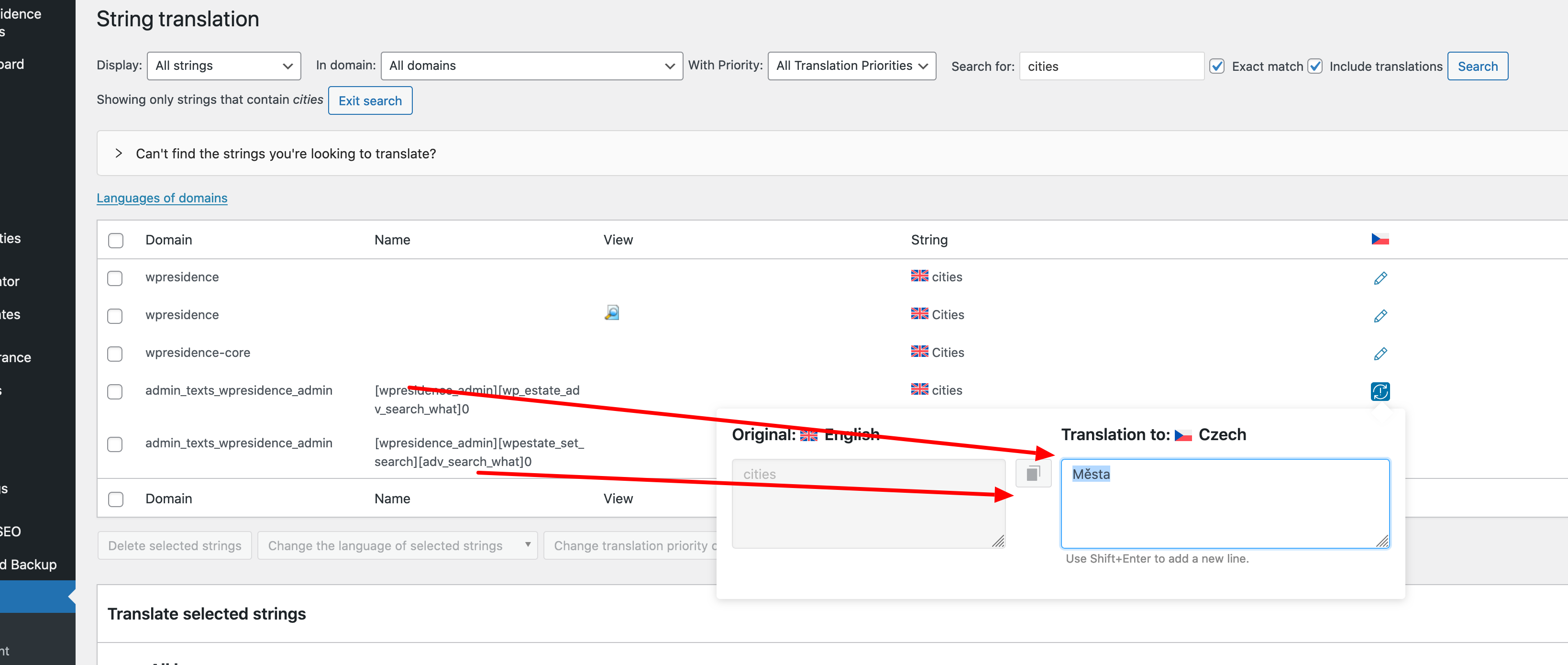 Для решения проблемы с полями, заблокированными для перевода, мы нашли строки по слагу 'cities' в WPML → String Translation и удалили перевод для некоторых полей, скопировав туда исходное значение.