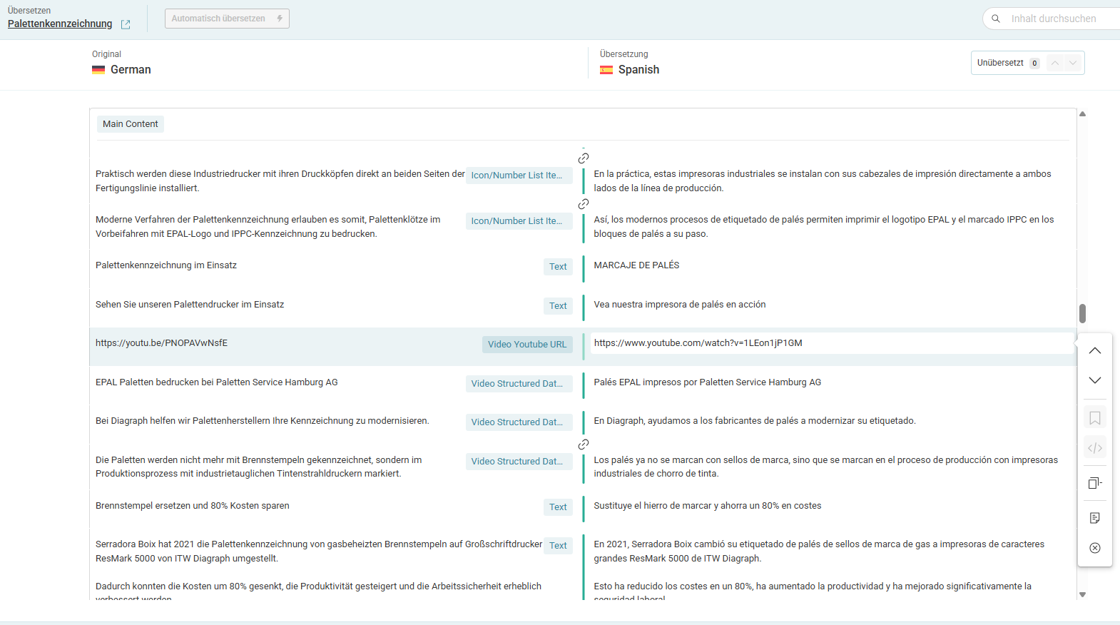Ich versuche, einzelne Texte, PDF-Links und YouTube-Links auf einer deutschen Seite, die mit WPML ins Spanische übersetzt wurde, manuell anzupassen. Diese Anpassungen erfolgen im Advanced Translation Editor (ATE). Link zur Seite: liên kết ẩn