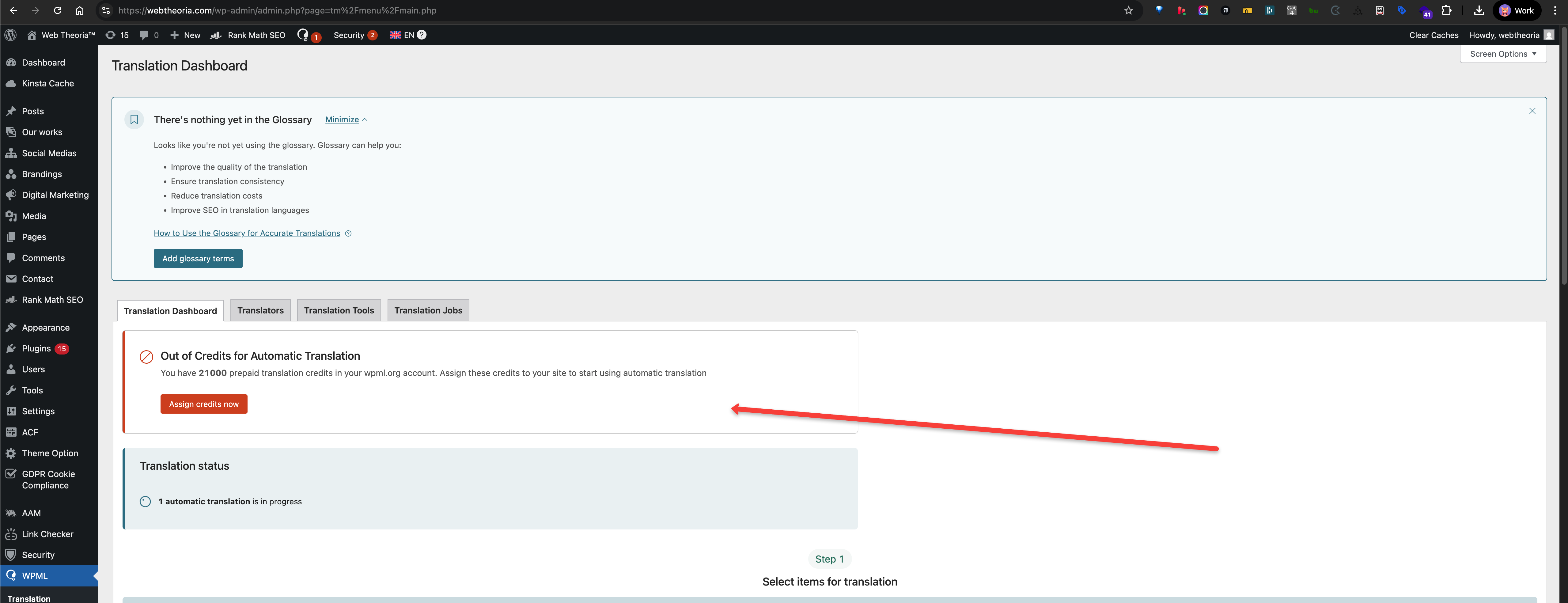 The website is still asking to add credit despite assigning 15,000 credits 3 days ago. It asked for 9,544 credits for translating one page.