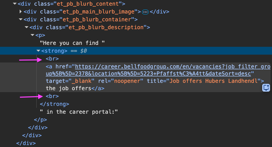 Translation adds hard line breaks () that aren't in the default language, resulting in the text being split over multiple lines with the link on its own line.